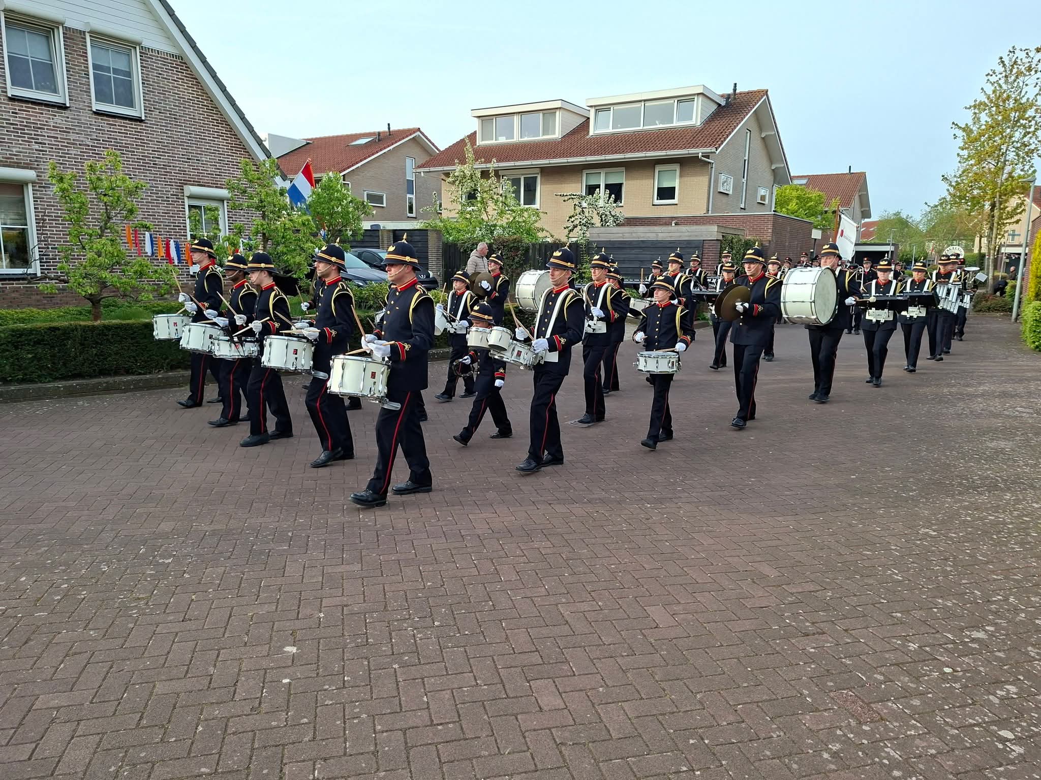 Christelijke Muziekvereniging Excelsior Oostendorp trekt door het dorp en houdt een aubade bij het gemeentehuis.