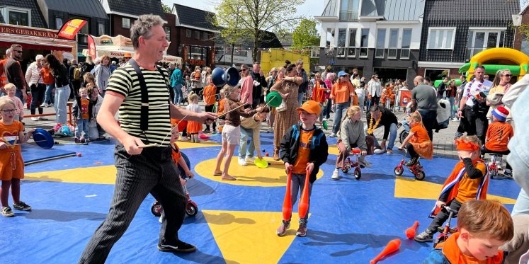 Circus Open Piste op het marktplein van Nunspeet is begonnen aan deze interactieve show. Jong en oud leren er weer wat kunstjes bij.